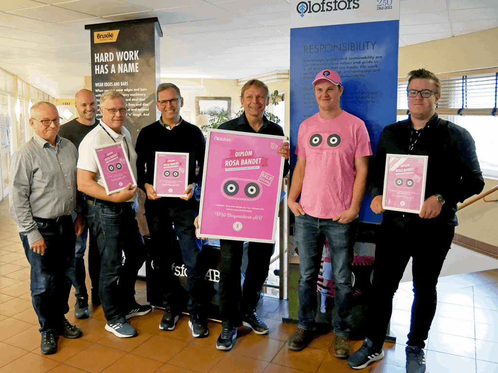 Friday November 12th, between 09:30-10:00, 11 of the 34 contributions of SEK 5 000 or more will be in the draw, where one person will receive the pink forest machine track. The track has has been donated from Olofsfors AB to the Breast Cancer Association in Sweden. They, in turn, pass on the track.